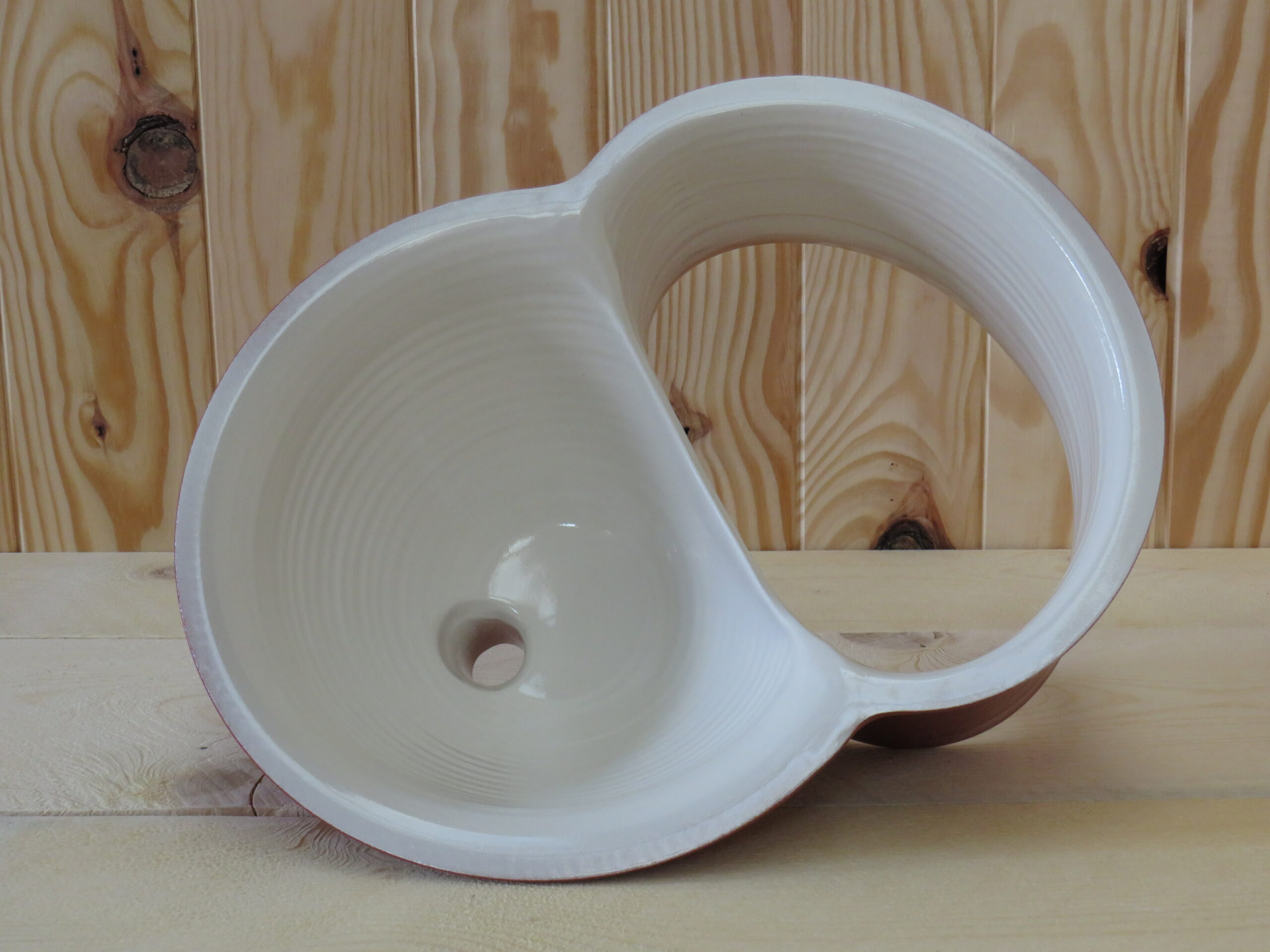 Séparamique® est un séparateur de toilette sèche en céramique fabriqué artisanalement sur le tour de la potière.